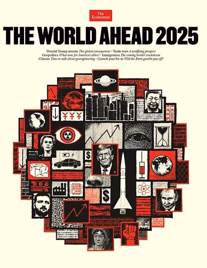 La reciente portada de la revista The Economist, titulada “THE WORLD AHEAD 2025”, captó la atención mundial por sus audaces predicciones y su simbolismo visual. Este número especial anual se ha consolidado como un referente en la anticipación de eventos globales y este año no es la excepción.
